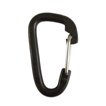 Mosquetón con resorte de acero inoxidable recubierto de negro, gancho a presión con ojal